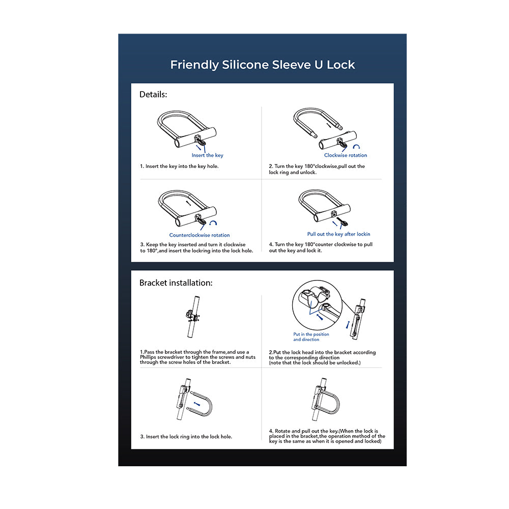 【Portable and Practical】The U lock is lightweight and convenient to carry and store. It is widely used in electric scooters, and mountain/road/folding bicycles, providing you with high-quality safety protection.